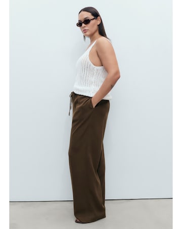 Long, straight design crafted from a breathable linen blend. Features an elastic waist with drawstring for a comfortable, adjustable fit. Includes two side pockets for practic...