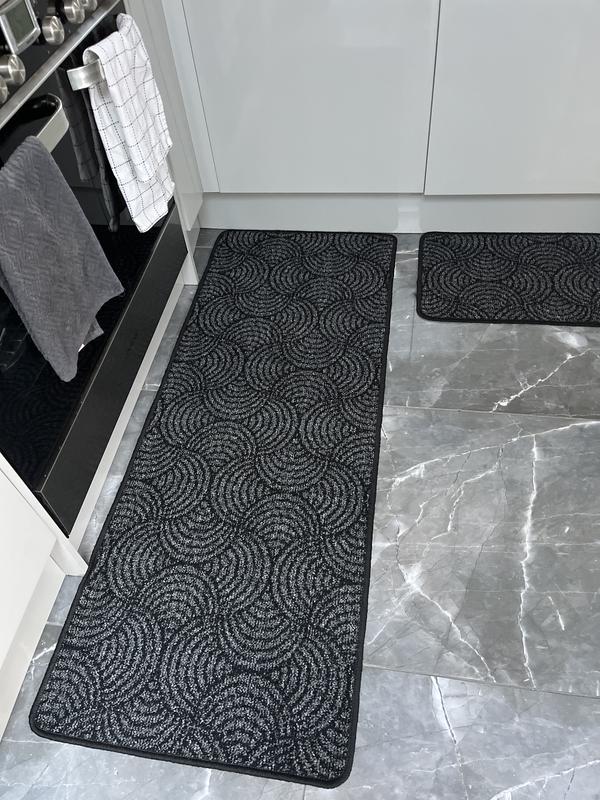 I got this runner for my kitchen even get door mat with it, great fits well stays put on the floor loveley pattern.